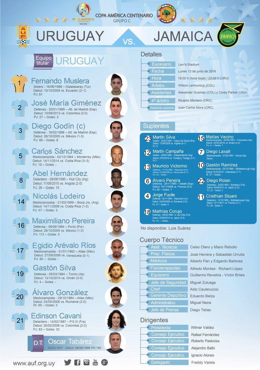 Fonte: Gazeta Esportiva (texto), Twitter da seleção uruguaia (escalação)