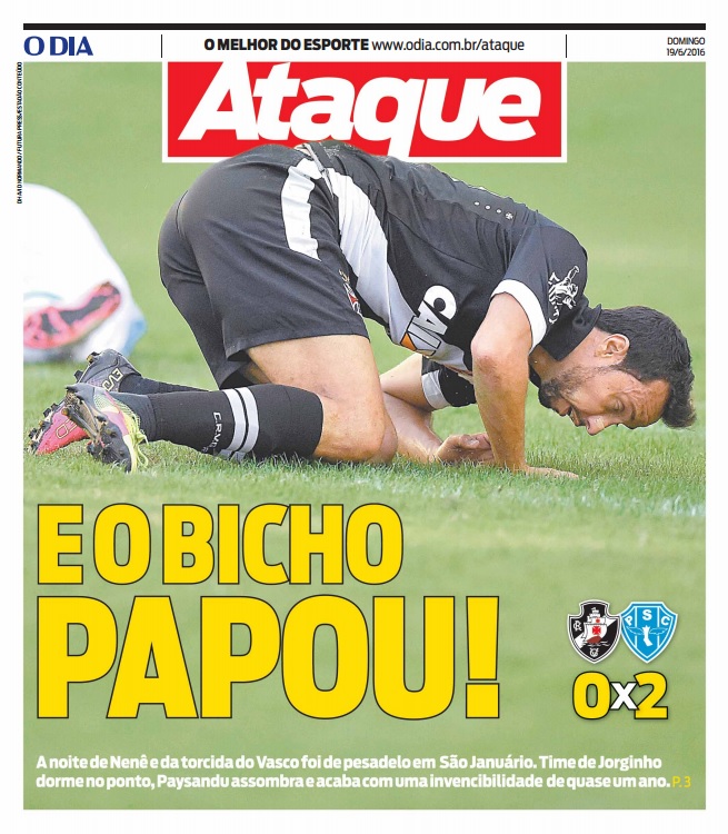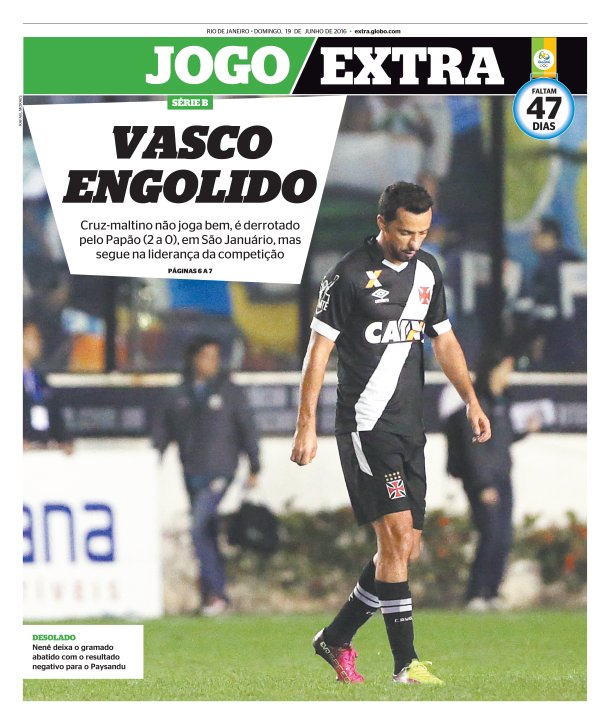 Veja como a imprensa carioca destacou a derrota do Vasco para o Paysandu