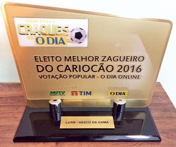 Luan exibe troféu de melhor zagueiro do Estadual e agradece por votos