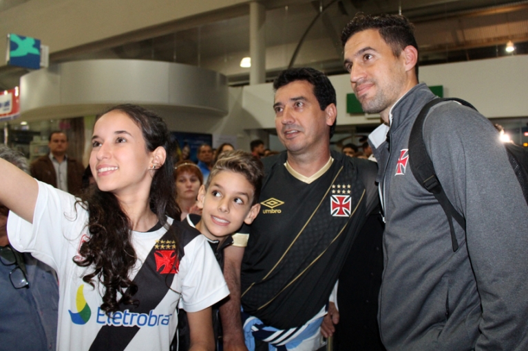![]() Martín Silva recebe o carinho de família vascaína no desembarque |