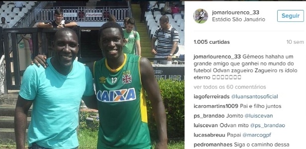 "Gêmeos hahaha (sic). Um grande amigo que ganhei no mundo do futebol: Odvan, zagueiro-zagueiro. Ídolo eterno", postou no Instagram o jovem, que está sempre brincalhão e é um dos mais queridos do grupo.