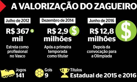 A presença na competição valorizará ainda mais o principal ativo vascaíno. No começo do ano, Luan ganhou considerável reajuste salarial: saltou de R$ 40 mil para R$ 100 mil, em meio às investidas de Corinthians e Flamengo. Se já é cobiçado no mercado interno, os Jogos Olímpicos deverão colocá-lo na mira de observadores europeus.