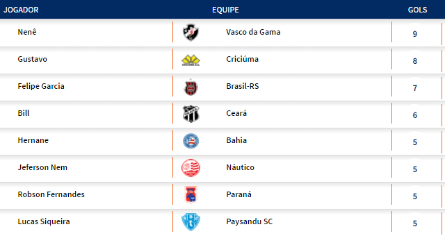 Com 9 gols, Nenê segue como artilheiro isolado do campeonato.