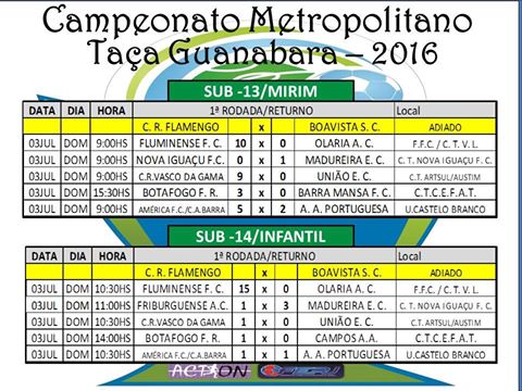 Pela 1ª fase do Campeonatos Metropolitanos Mirim Sub-13 e Infantil Sub-14, o Vasco derrotou no último domingo (03/07) o União respectivamente por 9 a 0 e 1 a 0, mantendo-se na liderança do Grupo B em ambas as competições