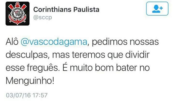 Obs.: Não se trata do Twitter oficial do Corinthians