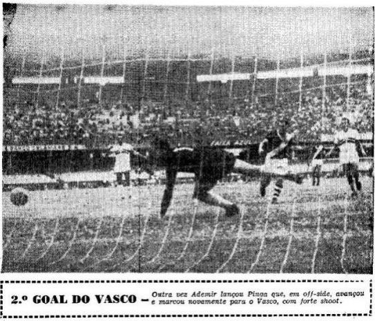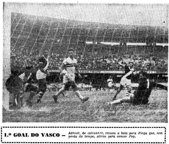 Classificado para as finais, com o São Paulo que derrotara o Fluminense, voltou a ganhar duas vezes, começando na quarta-feira da semana passada, na Paulicéia, por 1×0 (goal de Djair) e bisou o triunfo sábado. Utilizando dois arqueiros — Ernani e Oswaldo; quatro zagueiros —Augusto, Haroldo, Mirim e Bellini: quatro halves — o mesmo Mirim, Ely, Danilo e Jorge: e nada menos do que onze atacantes: Pedro Bala, Alfredo, Maneca, Sabará, Ademir, Ipojucan, Alvinho, Pinga, Simão, Chico e Djair, 21 jogadores ao todo, o quadro de São Januário cumpriu destacada performance, merecendo o titulo conquistado.