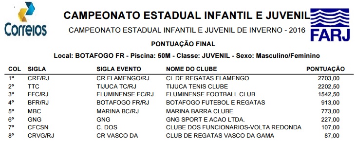 Fonte: Site oficial do Vasco (texto, fotos, quadro de medalhas), FARJ (pontuações)