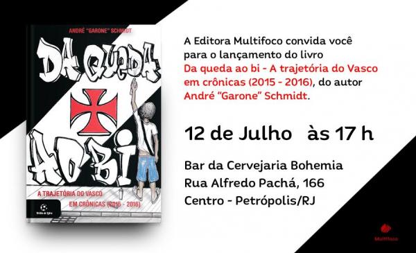 Livro 'Da Queda ao Bi - A Trajetória do Vasco em Crônicas', de André Schmidt, será lançado em Petrópolis no dia 12/07