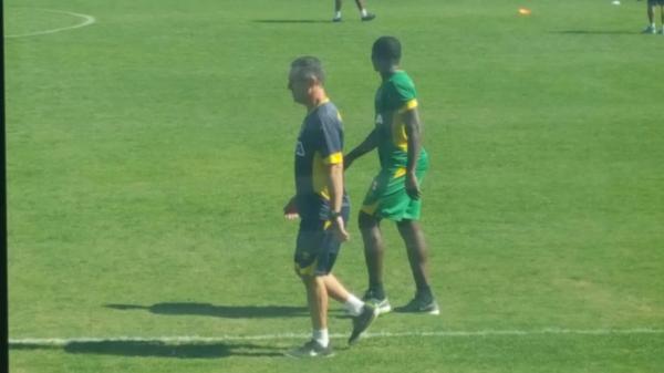 Felipe Schmidt @schmidt_felipe Olha o Jomar aí! Zagueiro caminha em campo. Sofreu artroscopia no joelho direito semana passada. #gevas