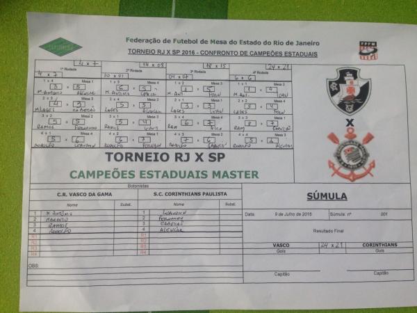 A equipe vascaína de futebol de mesa derrotou o Corinthians no último sábado, dia 9/07, no ginásio Helena Decache, no estádio Eduardo Guinle, em Nova Friburgo e ficou com o bicampeonato do Torneio Rio-São Paulo Interclubes, da categoria master.