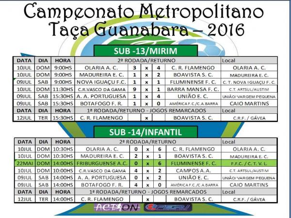 Campeonato Metropolitano. CAMPEONATO METROPOLITANO TAÇA GUANABARA - 2016 RESULTADOS