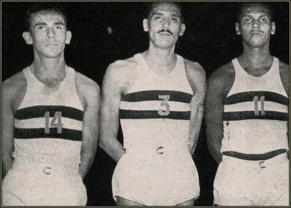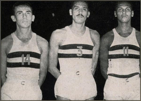 HÁ 70 ANOS, VASCO CONQUISTAVA SEU PRIMEIRO TÍTULO DE CAMPEÃO CARIOCA DE BASQUETE - NA FOTO: CLETO, ADÍLIO E RAYMUNDO, JOGADORES DA EQUIPE CAMPEÃ
