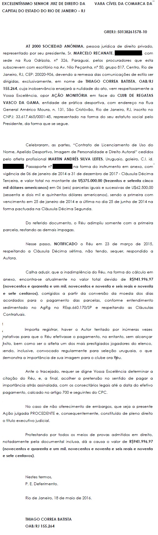 Confira íntegra da petição da empresa que detém direitos de imagem de Martín Silva