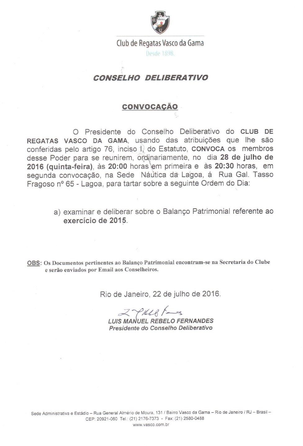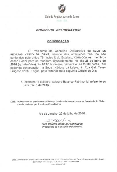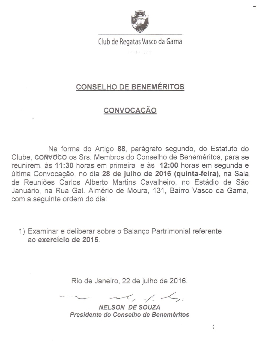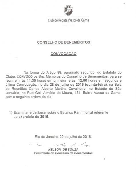 Conselhos de Beneméritos e Deliberativo são convocados para reunião na 5ª-feira para analisar contas de 2015