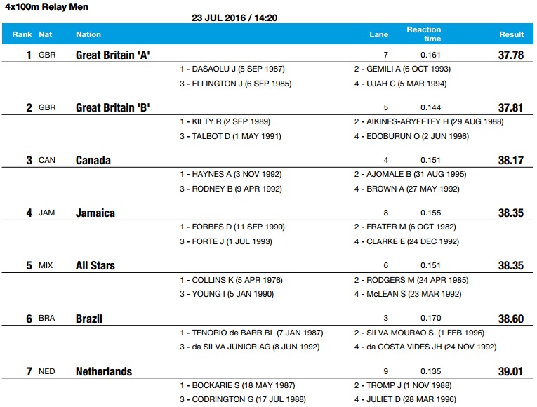 O corredor vascaíno Aldemir Gomes, classificado para as Olimpíadas Rio 2016, esteve em ação neste sábado (23/07) em Londres, onde disputou etapa da Diamond League. O quarteto brasileiro formado por Aldemir, Bruno Lins, Vitor Hugo dos Santos e Junior e Jorge Henrique Vides ficou em 6º lugar no Revezamento 4x100m com o tempo de 38s60. Ouro, prata e bronze ficaram, respectivamente, com Grã-Bretanha A (37s78), Grã-Bretanha B (37s81) e Canadá (38s17).