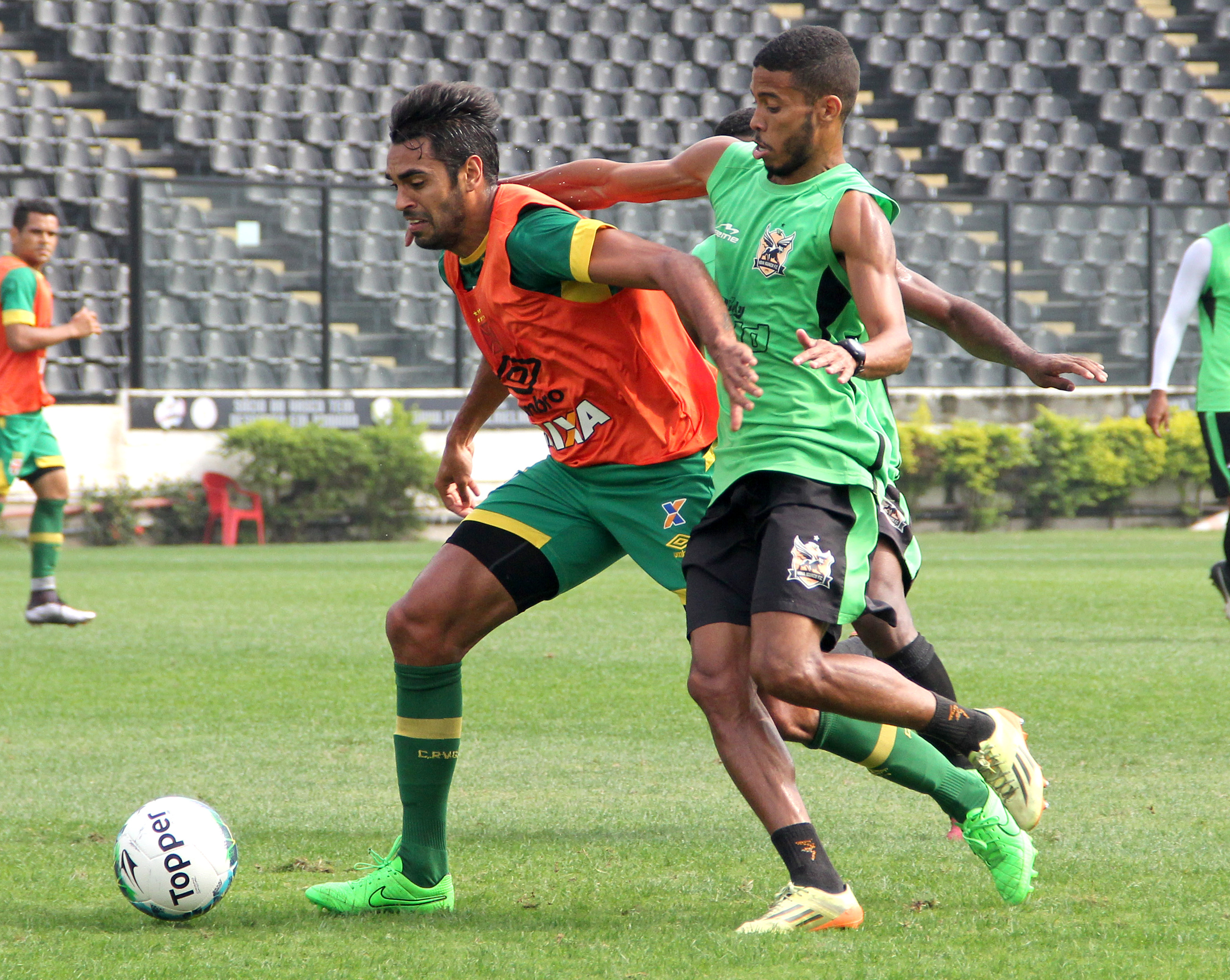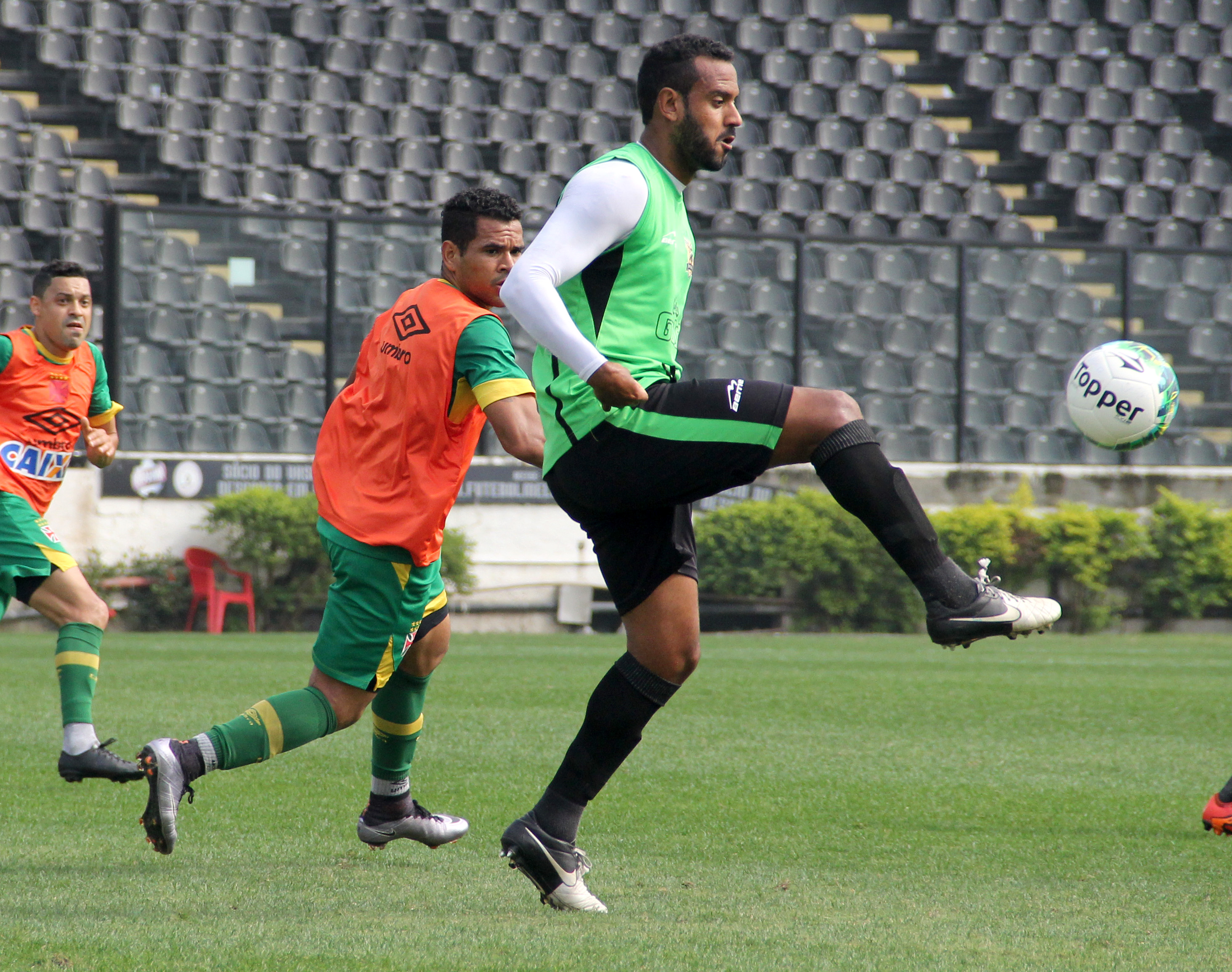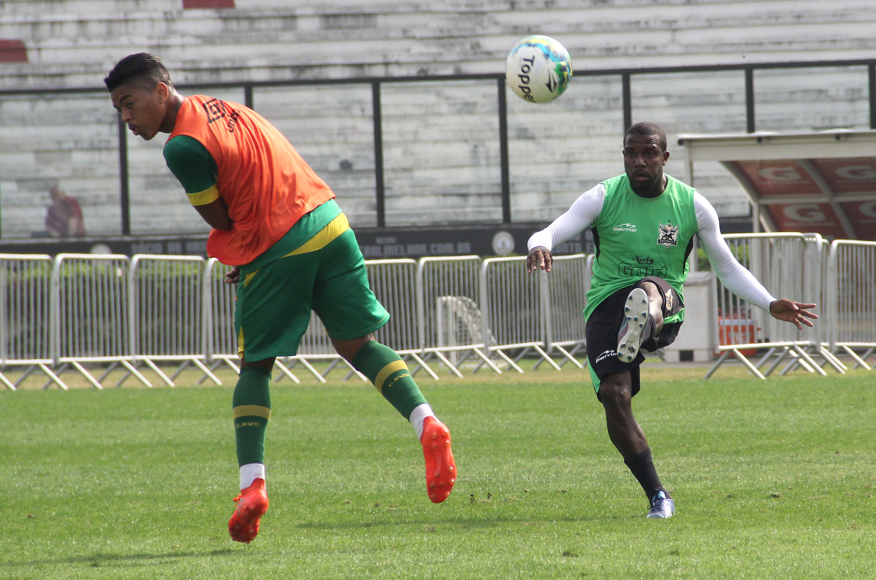 Junior Dutra e Ederson em campo. Dutra finalizou forte por cima do gol agora. #gevas