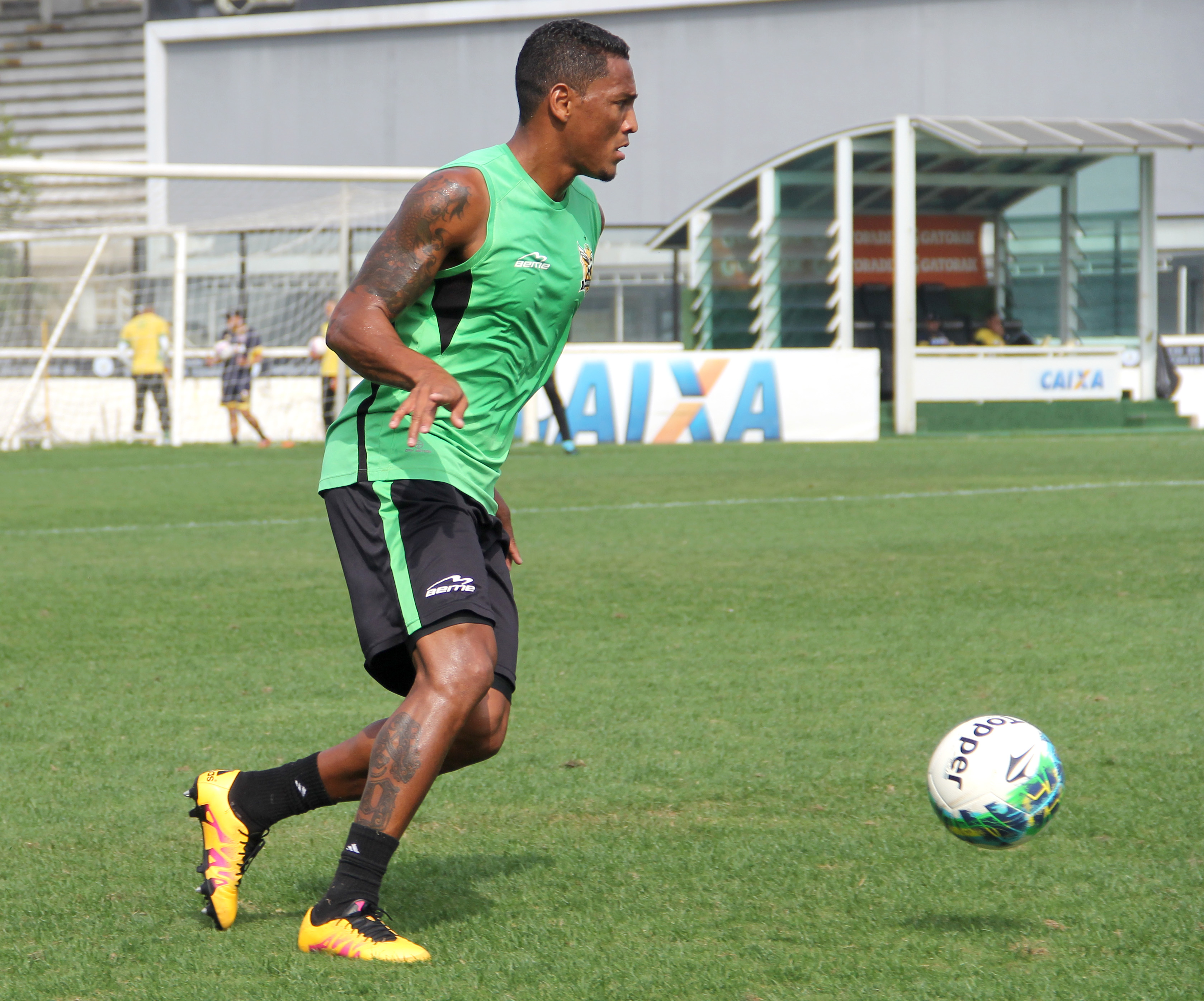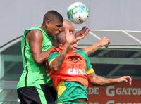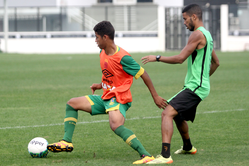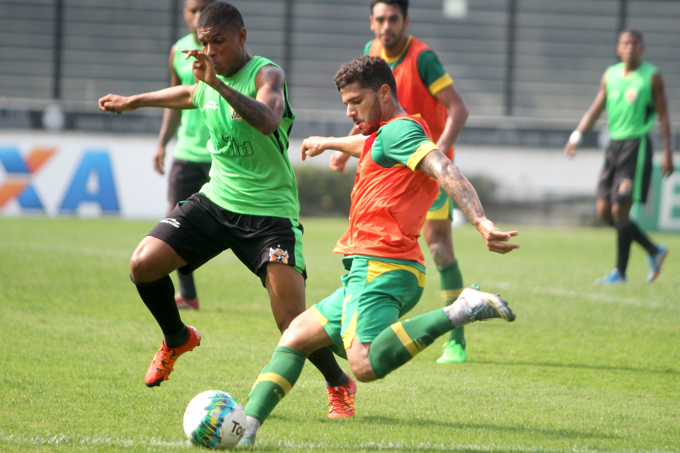 Junior Dutra e Ederson em campo. Dutra finalizou forte por cima do gol agora. #gevas