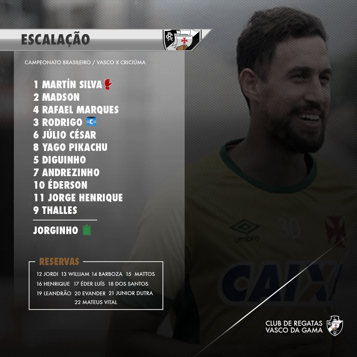 Vasco da Gama @vascodagama Escalação oficial do Vasco para o duelo contra o Criciúma. #VASxCRI