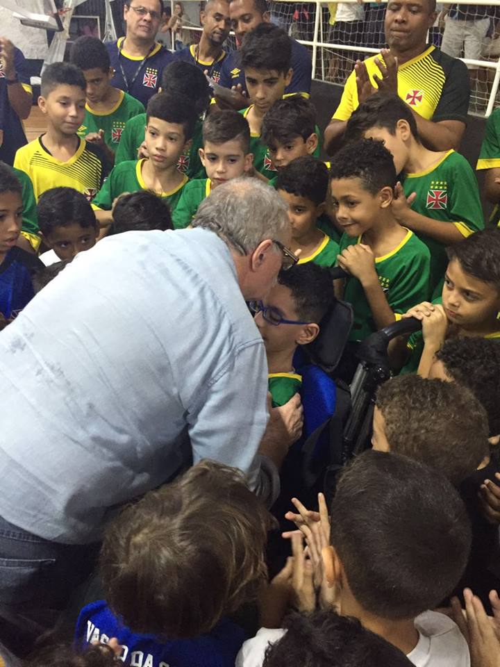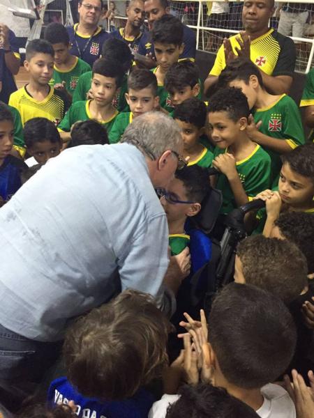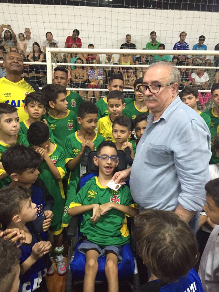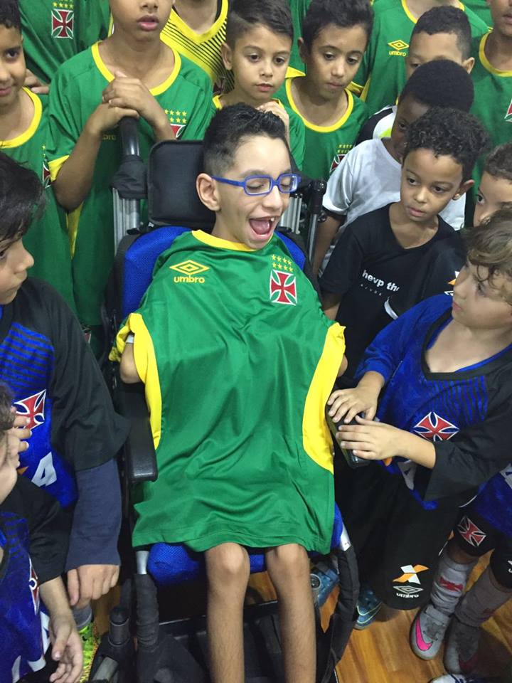 O menino João Pedro, que recentemente conseguiu através de uma campanha de arrecadação na internet uma nova cadeira de rodas, foi escolhido como novo mascote do departamento infanto-juvenil do Vasco.