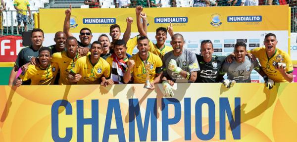 Onze vezes campeão. O Brasil venceu Portugal, atual campeão europeu e mundial (2015), por 6 a 4 (gols de Bruno Xavier, Mão, Filipe, Datinha, Lucão e Datinha, para os brasileiros, Bê Martins (2), Bruno Novo e José Maria, para os portugueses), na manhã deste domingo, dia 31, e conquistou o título invicto do Mundialito de Beach Soccer 2016, competição disputada na praia de Carcavelos, em Cascais. Lucão foi o ‘Artilheiro’ (8 gols), Toth (EUA) foi eleito o ‘Melhor Goleiro’ e Belchior (Portugal) foi escolhido o ‘Melhor Jogador’.