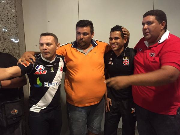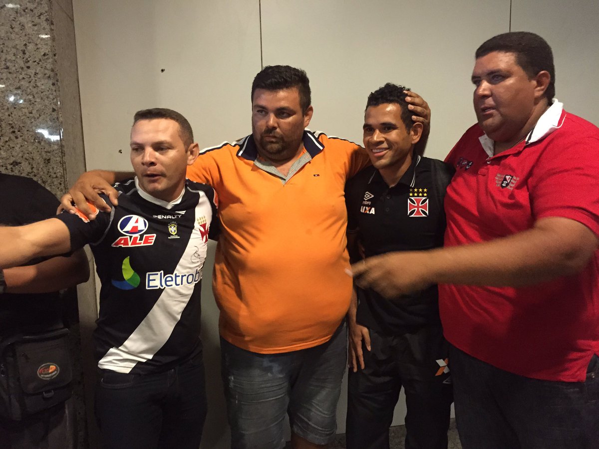 Acho que o Éderson saiu meio sonolento do voo e até se assustou com o assédio. Esse grupo pulou e o abraçou. #gevas