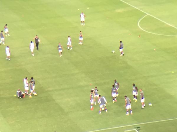 Sofia Arruda Miranda @SofiaMiranda7 Time do Vasco no aquecimento. No lado do Ceará, só os goleiros. #trcastelao