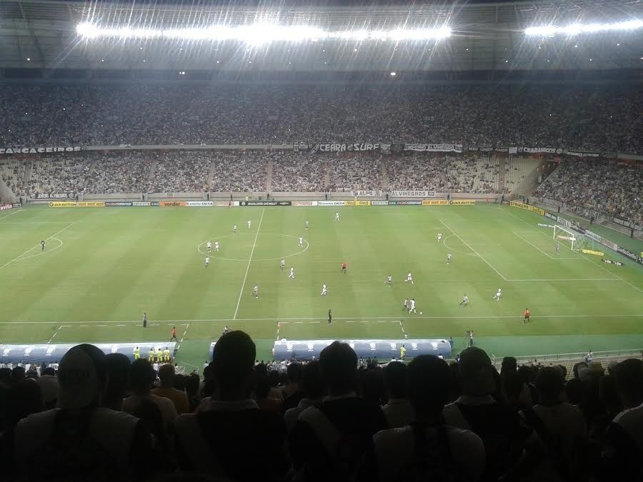 Decepção dentro de campo, mas longe disso fora das quatro linhas. A torcida do Ceará deu show nesta terça-feira. O Castelão recebeu 55.445 pagantes, para uma renda de R$ 1.231.465,00. O público bateu de longe o recorde da Série B, que antes pertencia ao duelo entre Sampaio Corrêa e Vasco, em maio, com 28.927 torcedores.