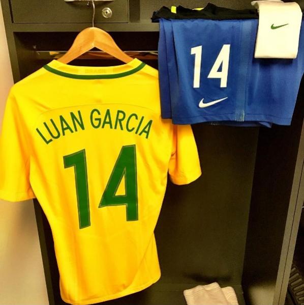Luan posta foto do uniforme da Seleção Olímpica no vestiário do Mané Garrincha
