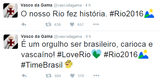 Twitter oficial do Vasco exalta abertura dos Jogos Olímpicos: 'O nosso Rio fez história'