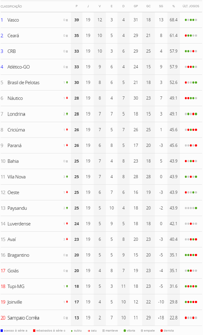 O Vasco liderou de ponta a ponta e conquistou o título simbólico de campeão do 1º turno. A diferença para o vice-líder (Ceará) é de 4º pontos e para o 1º time fora do G4 (Brasil de Pelotas) é de 9 pontos.