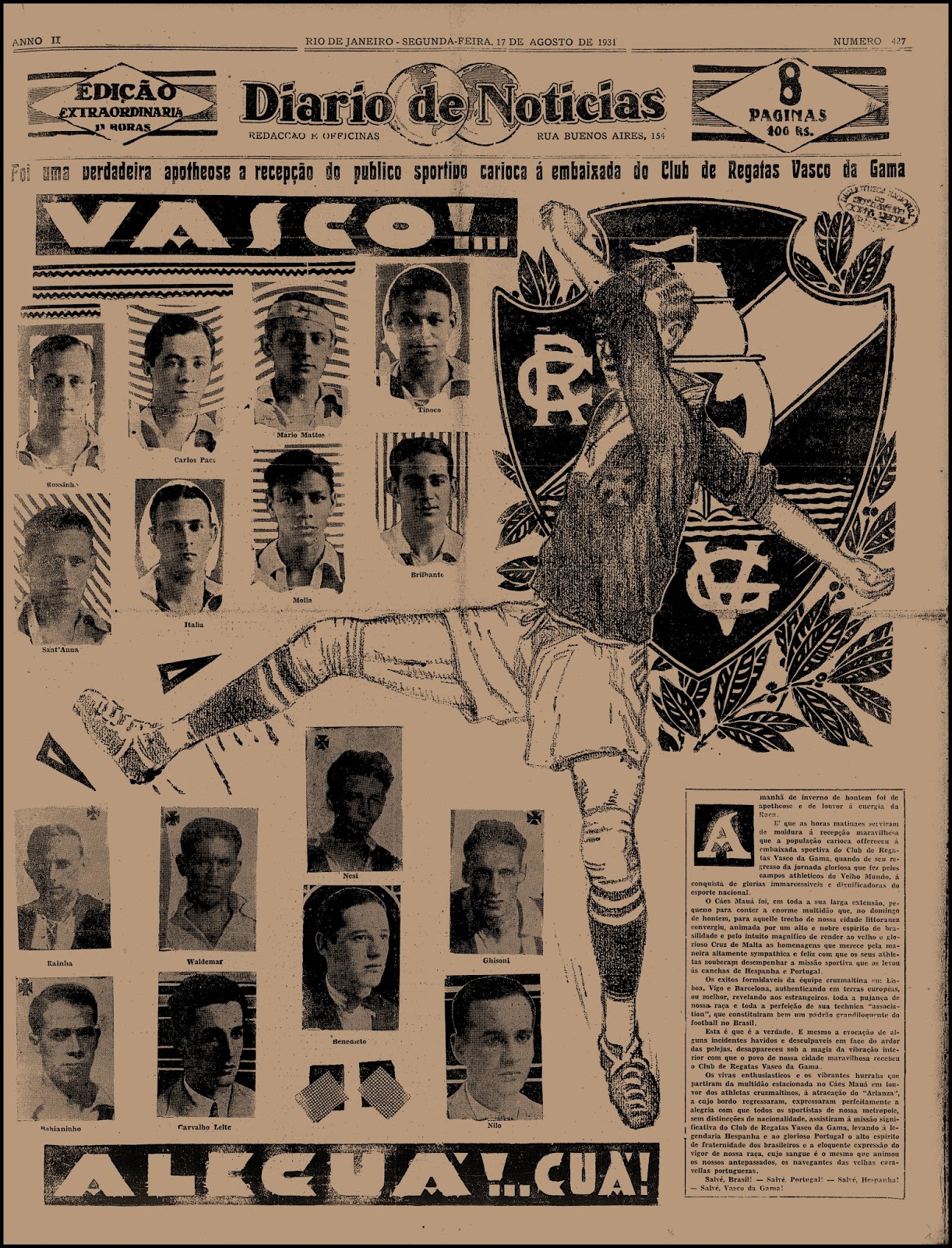 Mostraremos a seguir a síntese e as ns de mais esta epopeia histórica que só o Club de Regatas Vasco da Gama poderia promover!