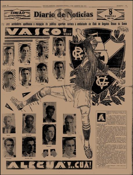 15/07/1931 - Combinado Benfica, Vitória e Casa Pia 2 x 4 Vasco da Gama (Russinho - 3 gols, e Nilo)