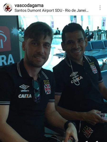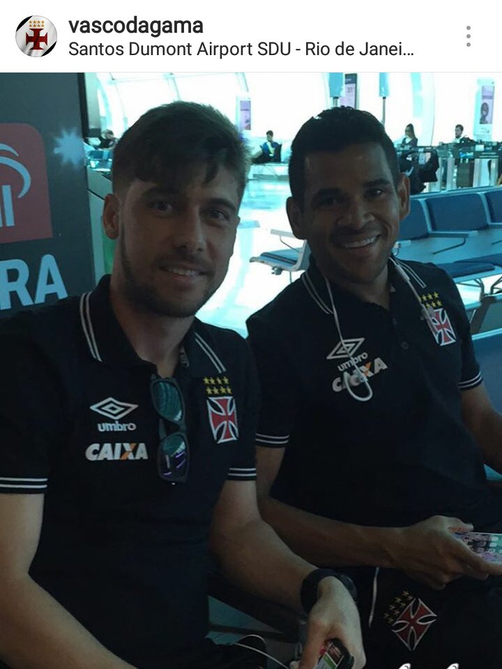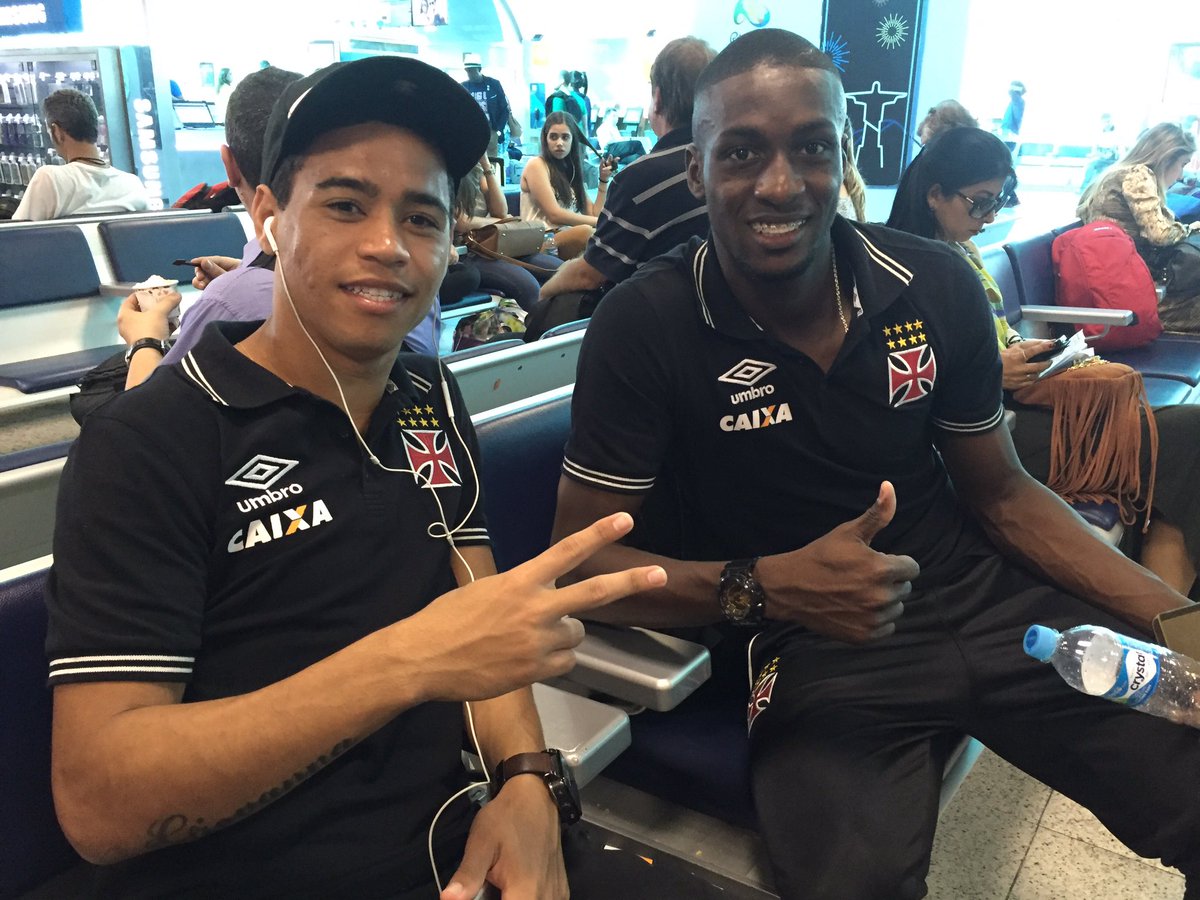 Daqui a pouco o Vasco embarca para Vitória. Fellype Gabriel e Éderson na foto. Vou embarcar também! Fui! #gevas