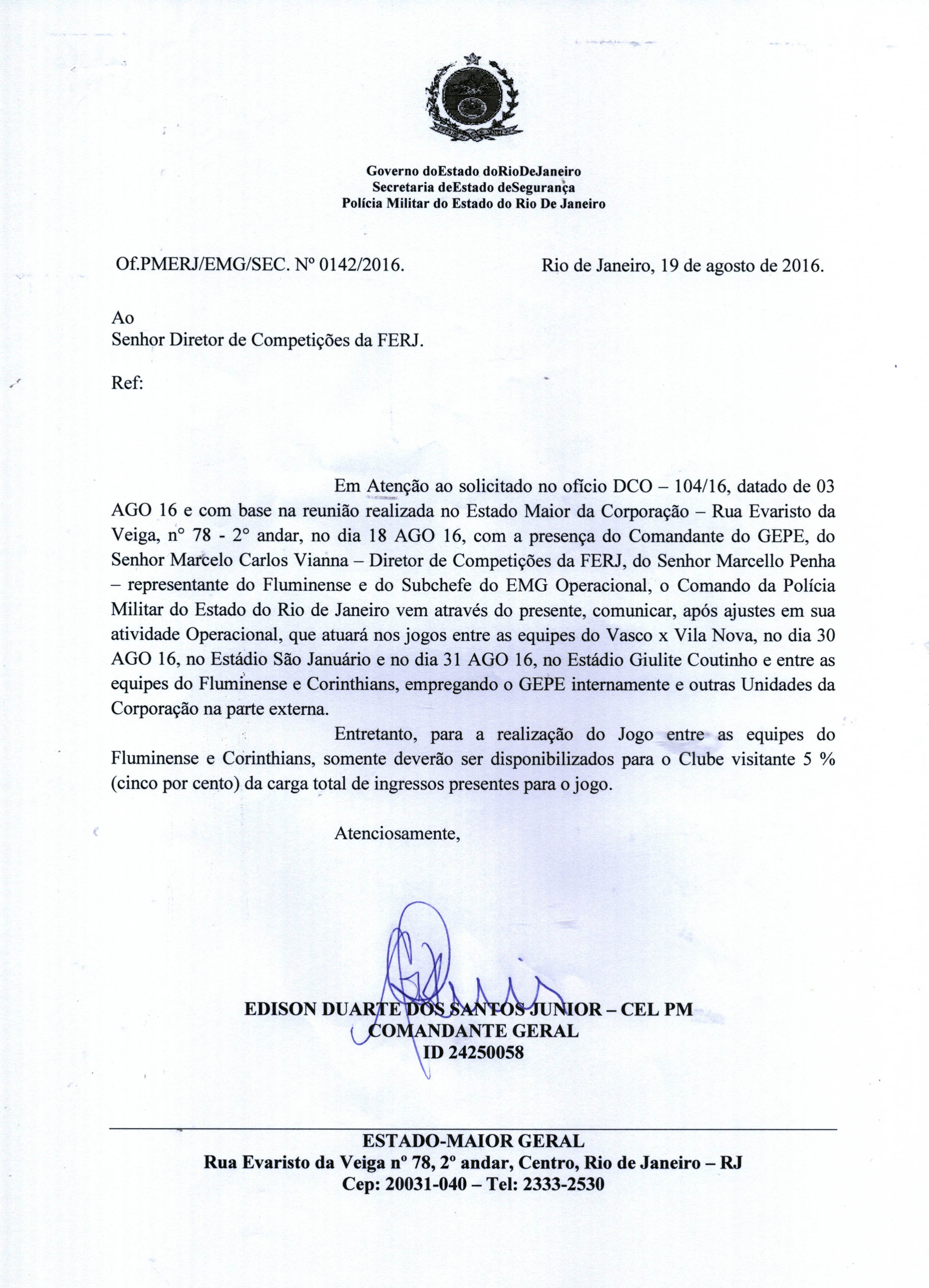 Ausentes do estado do Rio de Janeiro no mês de agosto em virtude dos Jogos Olímpicos, os clubes cariocas voltarão as suas casas a partir do próximo dia 30. O Grupamento Especial de Policiamento em Estádios (GEPE) confirmou que seu efetivo estará liberado a partir desta data, autorizando a realização de partidas oficiais. O comunicado foi feito através de ofício emitido pela Polícia Militar no último dia 19 e divulgado pela Federação de Futebol do Estado do Rio de Janeiro (FERJ) nesta terça (23).