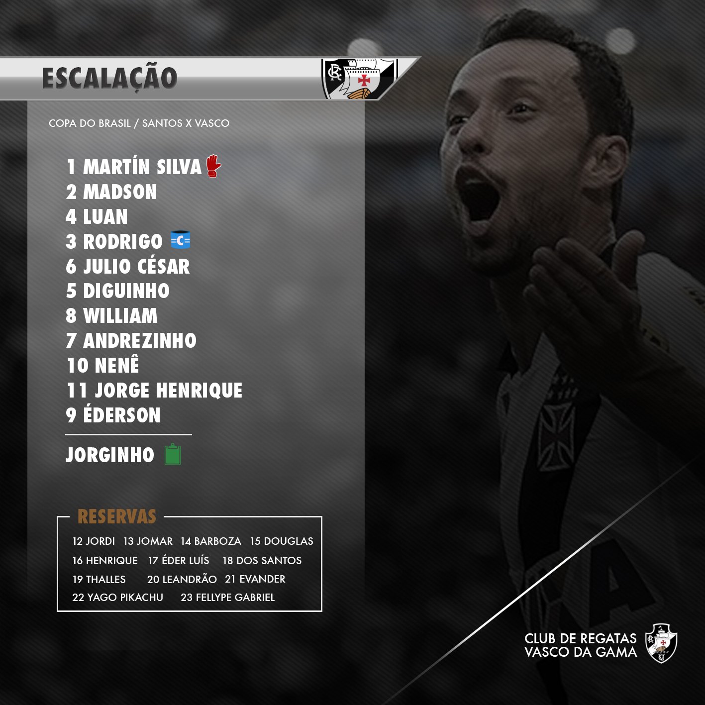 Veja escalação oficial do Vasco para o jogo contra o Santos