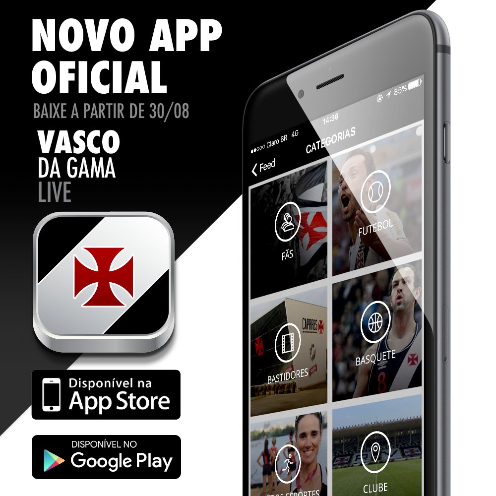 Vasco da Gama @vascodagama Vem novidade! Dia 30, vamos lançar o novo aplicativo do Vascão para você ficar por dentro de tudo! #VascodaGamaLive