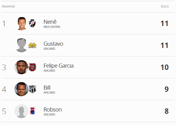 Nenê tem 11 gols marcados e divide o topo da artilharia com Gustavo, do Criciúma, que não disputará mais a Série B porque acertou com o Corinthians.