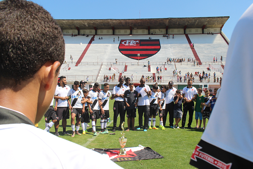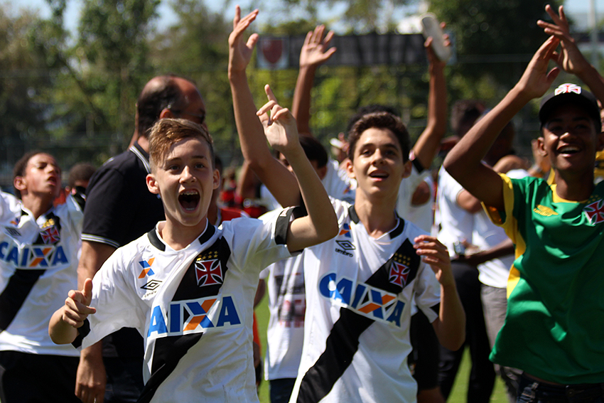 Se ganhar é bom e ser campeão é melhor ainda, imagina então levantar uma taça derrotando um rival de virada na casa dele! Foi isso que aconteceu na manhã deste domingo (28/08) com a equipe sub-13 do Vasco na decisão da Taça Guanabara, o primeiro turno do Metropolitano. Jogando no Estádio da Gávea, os Meninos da Colina saíram atrás do marcador, mas demonstraram força e venceram o Flamengo por 4 a 3, garantindo assim a conquista do título.