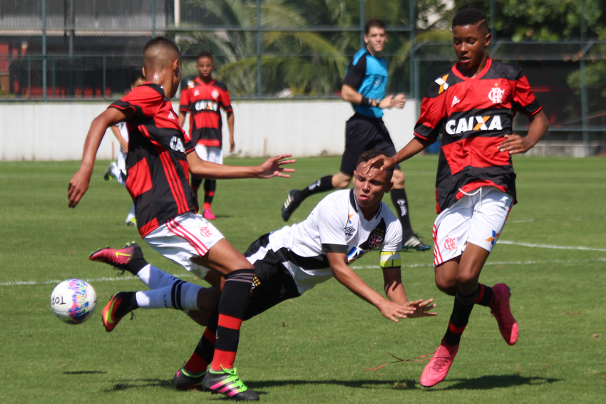 A partida começou agitada, com o Flamengo pressionando a saída de bola e dominando as ações ofensivas. Antes do cronômetro marcar 10 minutos, o time da casa abriu o placar após cobrança de escanteio. O tento serviu para acordar o Gigante da Colina, que igualou o marcador aos 14 minutos, com Juan Batata. O atacante recebeu a bola no meio-campo, se livrou da marcação de cinco jogadores rubro-negros e tocou com categoria na saída do goleiro. A comemoração vascaína durou pouco tempo. No minuto seguinte, em boa jogada pela direita, o clube da Gávea recuperou a vantagem.