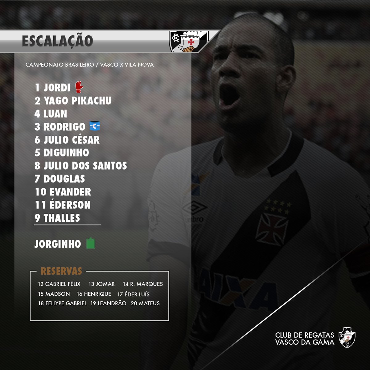 Confira escalação do Vasco; Julio dos Santos, Douglas Luiz e Evander são titulares