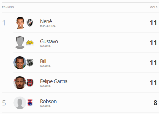 Nenê tem 11 gols marcados e divide o topo da artilharia com outros 3 jogadores.