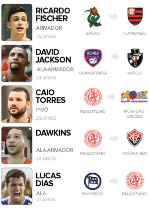Quem também abriu o bolso foram Vitória e Brasília. Enquanto os baianos se reforçaram com o americano Kenny Dawkins, ex-Paulistano, e o ala Arthur, que deixou justamente a equipe do Distrito Federal após 10 temporadas, os tricampeões nacionais trouxeram os pivô Lucas Mariano, ex-Mogi, e Fab Melo, que teve uma passagem pelo Boston Celtics, para tentar recuperar a hegemonia perdida para o Flamengo.