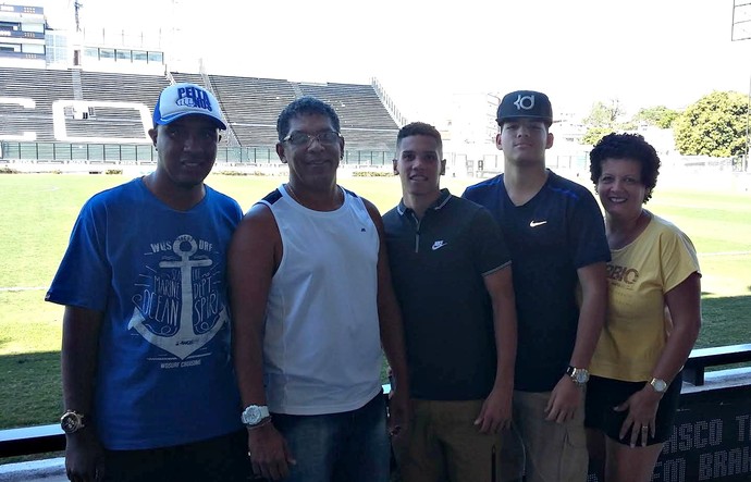 ![]() Paulinho (no centro) ao lado da família: Pablo (à esquerda), Paulo, Romário e Ana |