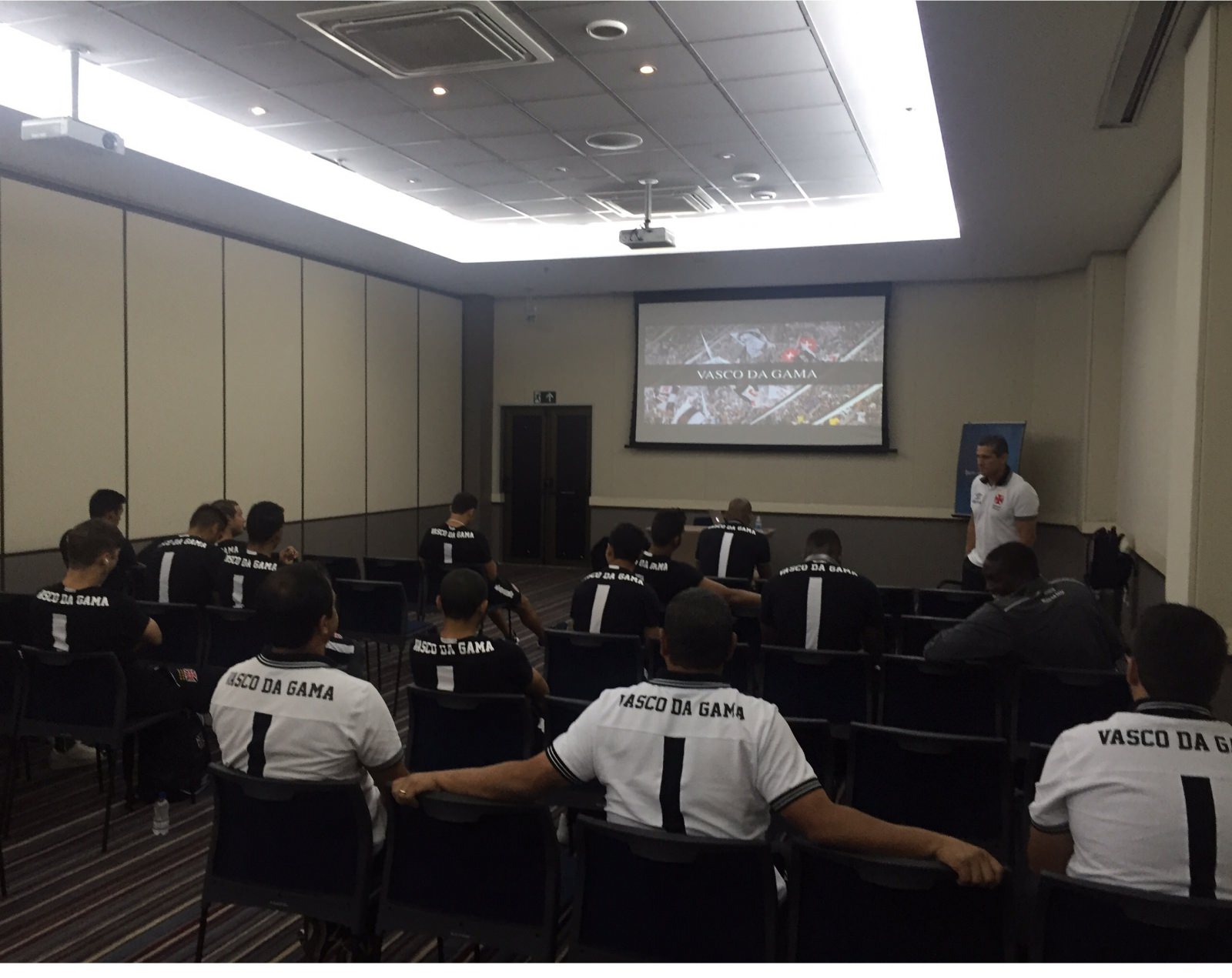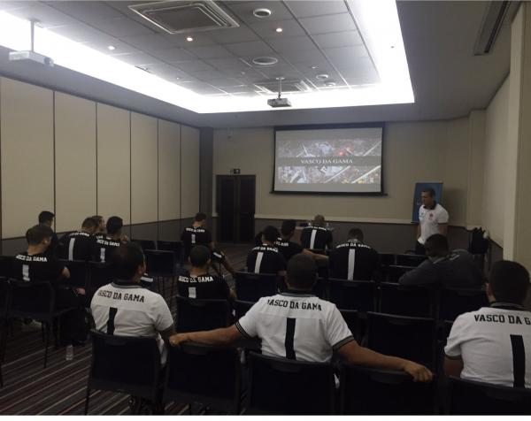 Treinador Jorginho comanda preleção neste exato momento no hotel onde a delegação vascaína está hospedado em Salvador!