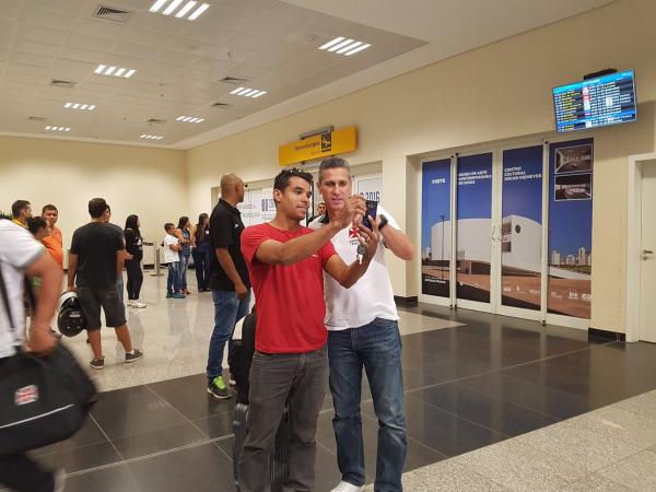 Jorginho atende torcedor na chegada a Goiânia. #gevas