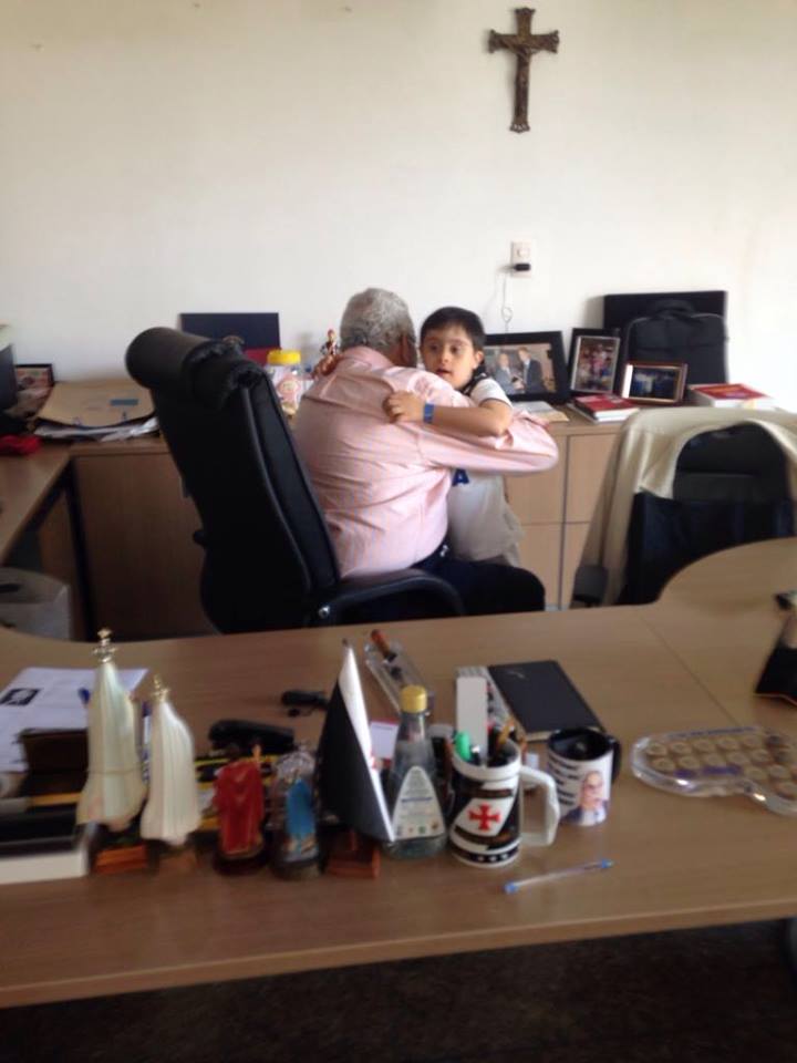 Assim que o menino adentrou a sala da Presidência recebeu um sorriso do Presidente e um abraço demorado,o presidente sensibilizado com o carinho do menino,levantou-se para tirar fotos com o menino e lhe deu um beijo!!!Emocionado o Presidente coloca o menino na poltrona da Presidência(Lugar máximo no Clube) e tira foto com o menino que ao deixar a sala ficou com os olhos brilhando de tanta felicidade e deixou todos presentes em êxtase com a cena!!!