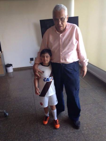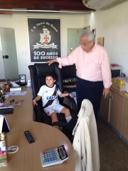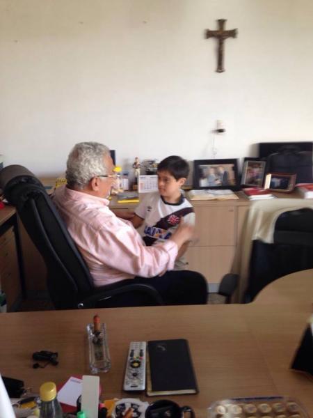 Menino com Síndrome de Down,chegou acompanhado do pai em São Janúario e queria realizar o sonho de conhecer o Presidente do Vasco seu Ídolo maior!O pedido do pai foi passado ao Presidente pelo chefe de segurança do Estádio e de pronto autorizado por Eurico Miranda.