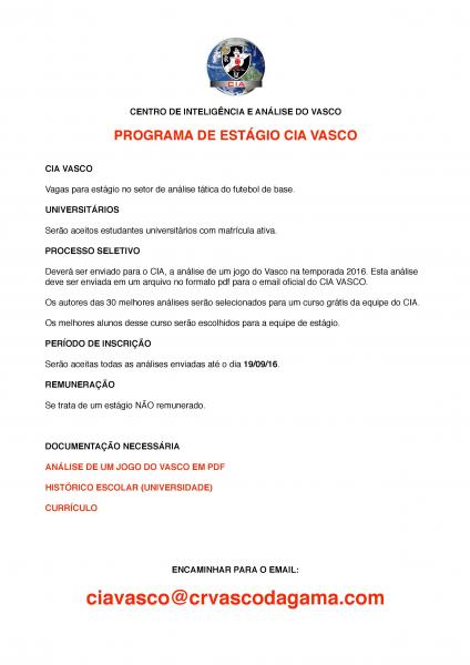 Centro de Inteligência e Análise do Vasco abre vagas para estágio