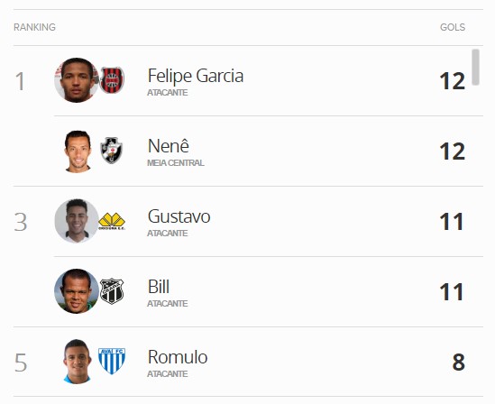 Nenê tem 12 gols marcados e está na liderança da artilharia ao lado de Felipe Garcia, do Brasil de Pelotas.