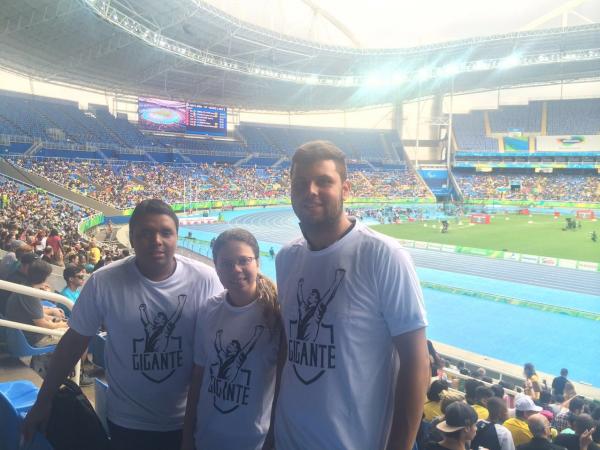 Após um resgate relâmpago, os Gigantes Leonardo Cardoso, Camila Assis e Willy Camargo ganharam ingressos para acompanhar as provas de Atletismo no Estádio Olímpico e ainda receberam uma camisa exclusiva do Gigante para representarem o Vasco nos Jogos Paralímpicos.